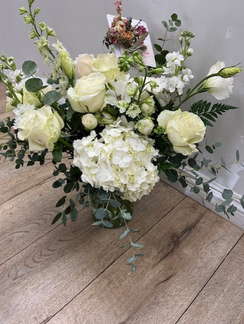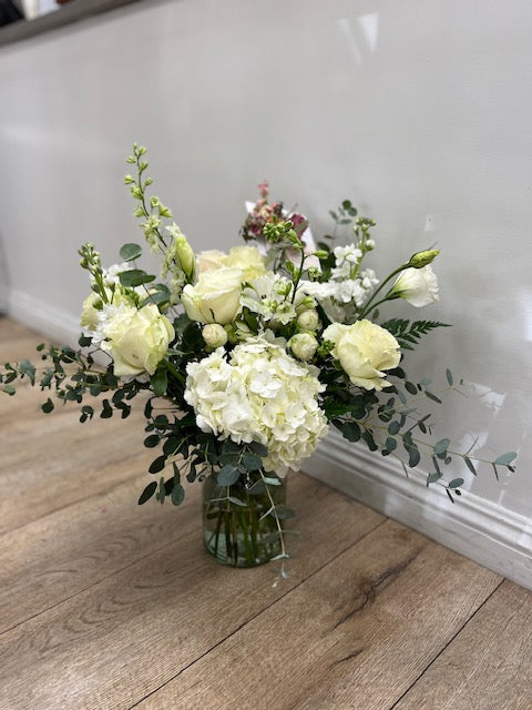 Hydrangea, Roses Lisianthus Stock, Larkspur