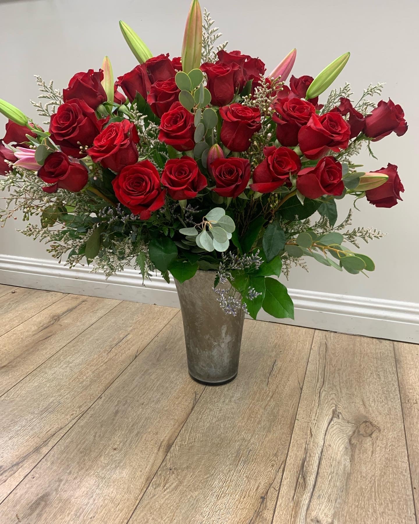 Beautiful Long Stem Red Roses with Stargazer